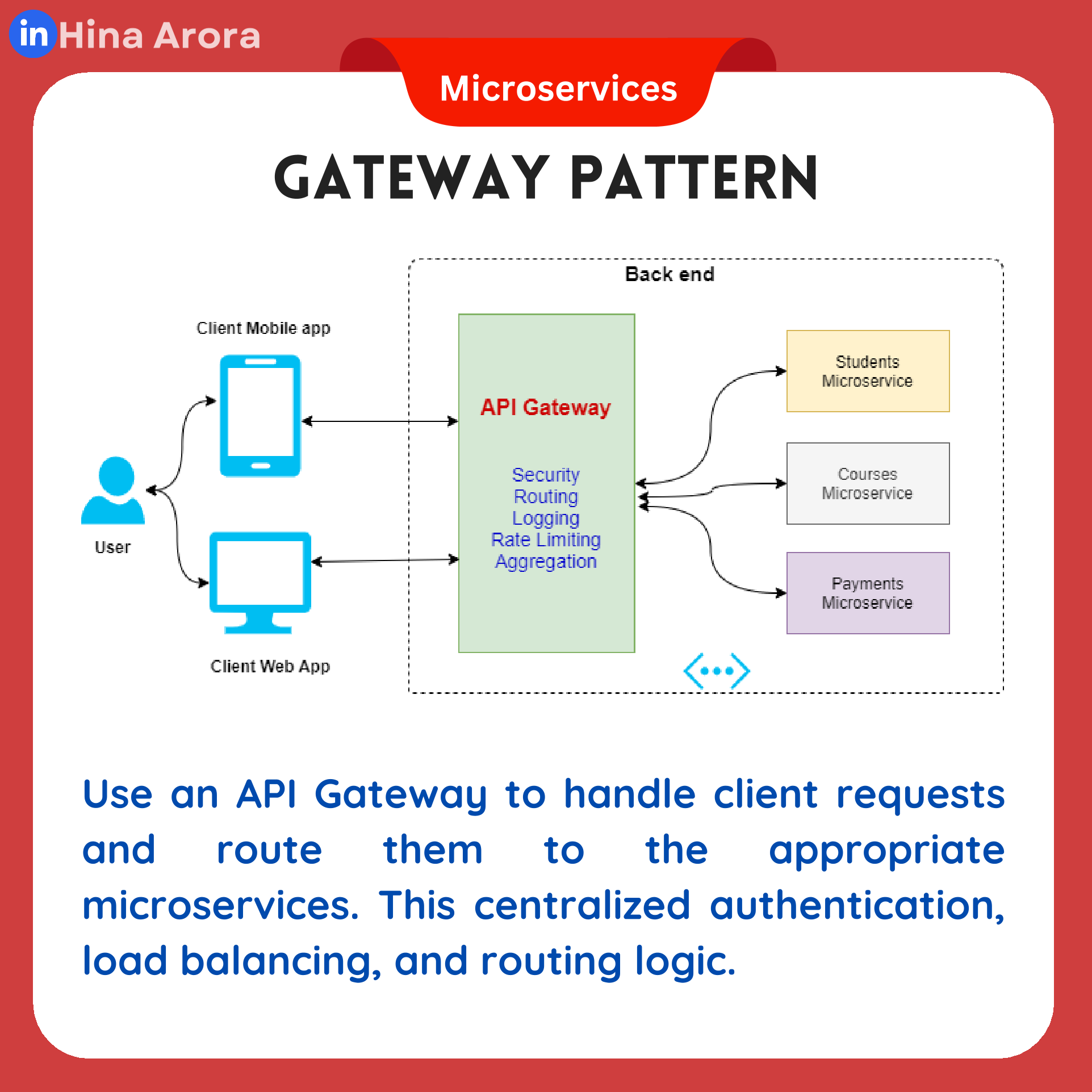 🔹 API Gateway 🌍 – استفاده از درخواست متمرکز ، تأیید اعتبار و مسیریابی.